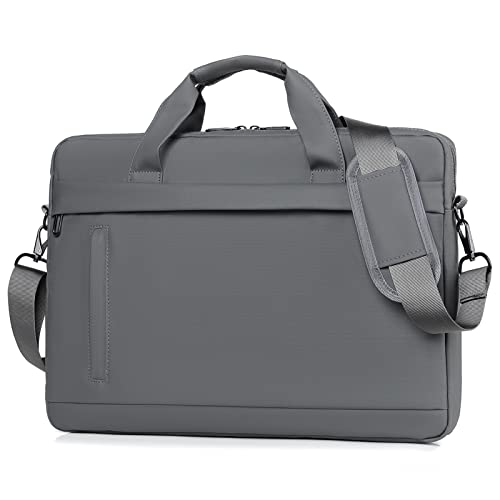 Qiccijoo - شنطة لابتوب للرجال والنساء مقاس 15.6 انش، شنطة كتف مع حزام، شنطة ماسنجر للسفر والعمل (رمادي)