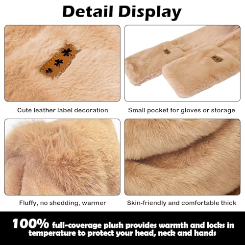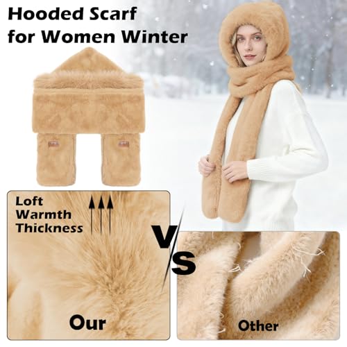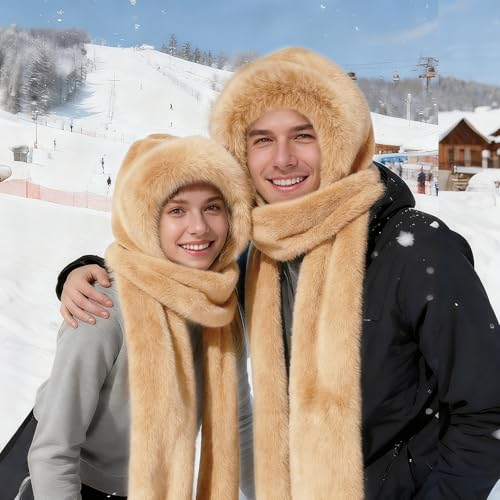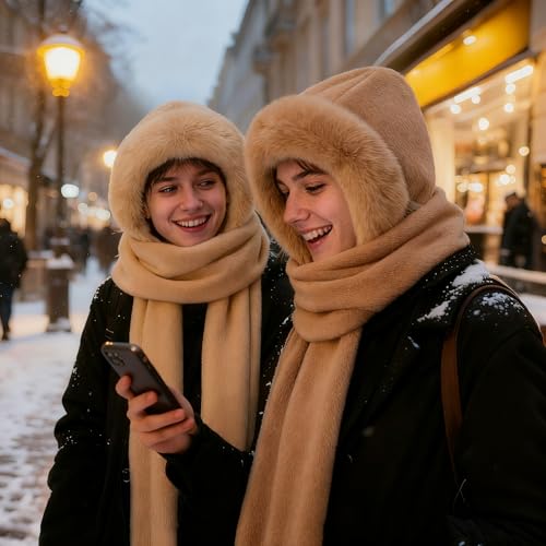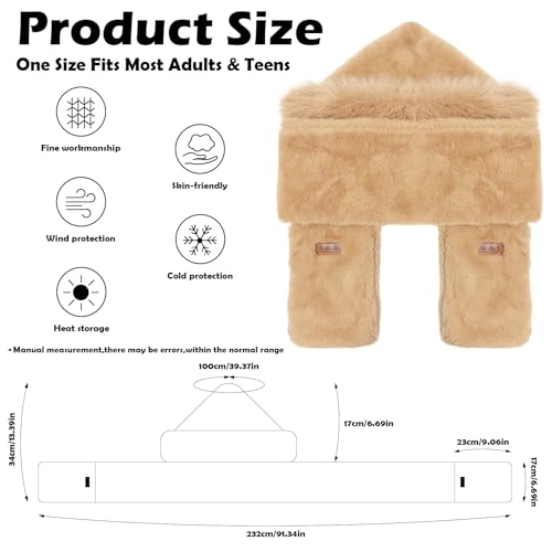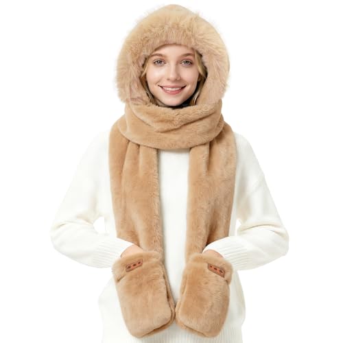 Qincycle - وشاح بقلنسوة للنساء من كينسايكل للشتاء - قبعة ووشاح من الفرو الصناعي 3 في 1 مجموعة ناعمة وسميكة ودافئة