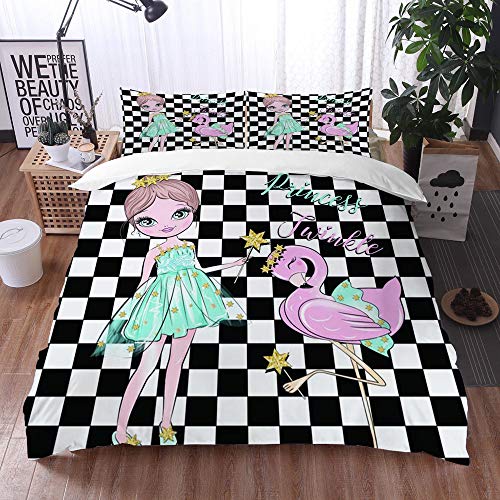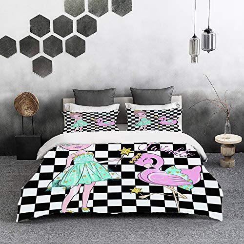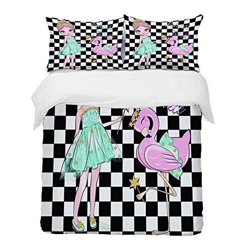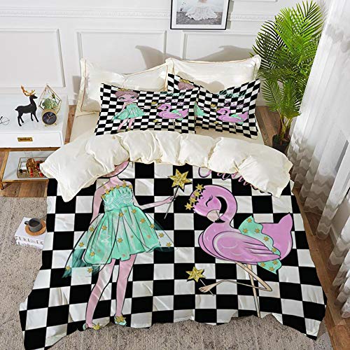 Qinniii - اطقم غطاء لحاف بتصميم ماجيك جيرل لو برينسيس وفلامينغو مربعات لطيفة طقم مكون من 3 قطع مقاس 220 × 240 سم + 2 وسادة 50 80 بوليستر متقلب متعدد الألوان