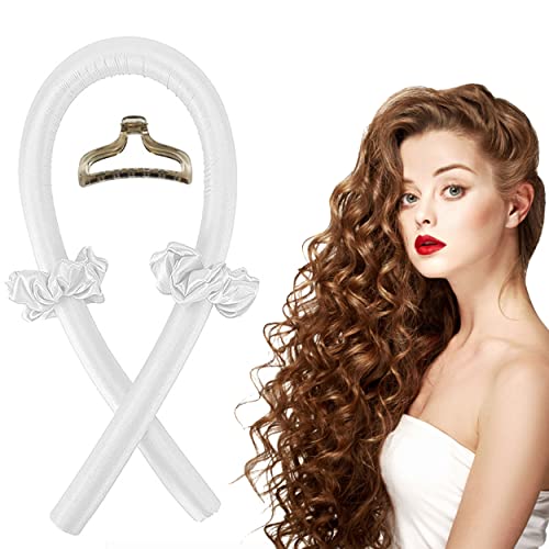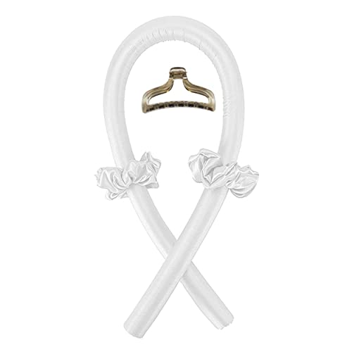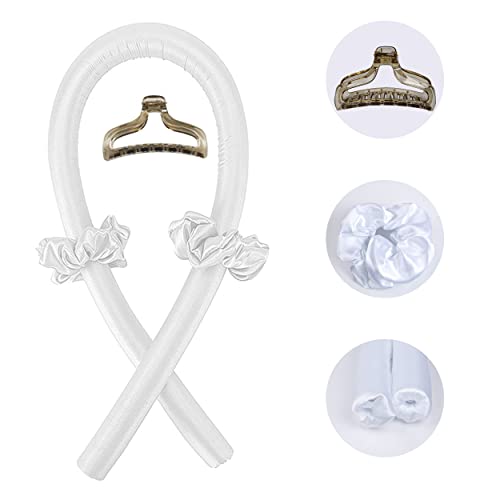 QinYing - أربطة رأس مع بكر لتمويج الشعر بدون حرارة من كين يينغ، أداة تمويج الشعر الطويل بخطوة واحدة، أداة تموج الشعر خلال الليل مع مشابك وأربطة للشعر، مجموعة للتصفيف الشعر بنفسك قبل النوم، لون أبيض