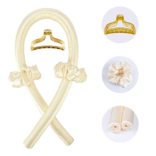 QinYing - أربطة رأس مع بكر لتمويج الشعر بدون حرارة من كين يينغ، أداة تمويج الشعر الطويل بخطوة واحدة، أداة تموج الشعر خلال الليل مع مشابك وأربطة للشعر، مجموعة للتصفيف الشعر بنفسك قبل النوم، لون أصفر