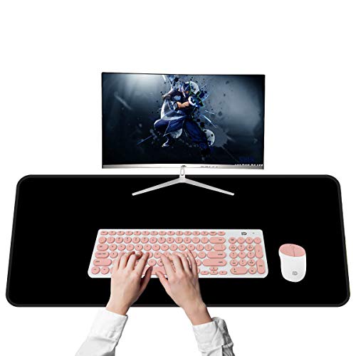Qisan - قاعدة ماوس ألعاب مستطيلة الشكل كبيرة ممتدة بقاعدة مطاطية غير قابلة للانزلاق للكمبيوتر والكمبيوتر المحمول ولوحة المفاتيح مقاس 80 × 30 0.38 سم بوصة من كيسان أسود