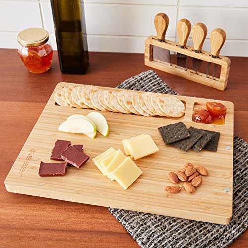 - ألواح السحب: لوح الجبن مع 4 سكاكين جبن مصنوعة بشكل جميل من الستانلس ستيل وهي مصنوعة من مقابض الخيزران وسهلة الإمساك، الأخاديد مثالية للمقرمشات والحلويات والخبز المحمص؛ صندوق سكاكين الخيزران الفريد القابل للإزالة سيحافظ على سكاكين الجبن منظمة ويظهر جمالها الحقيقي؛ الحجم القياسي (14 انش طول × 11 انش عرض × 0.7 انش ارتفاع) تقدم لك مساحة كافية ل الأجبان والمقبلات المفضلة لديك.