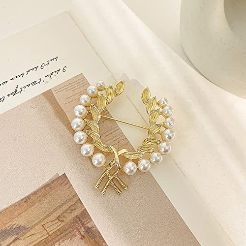 Qisogy - دبوس بروش من كيسوج، دبوس بروش عصري لؤلؤي باروك ذهبي للاوشحة والقميص، مجوهرات للنساء والفتيات لحفلات الزفاف وعيد الحب والكريسماس، لؤلؤ الومنيوم