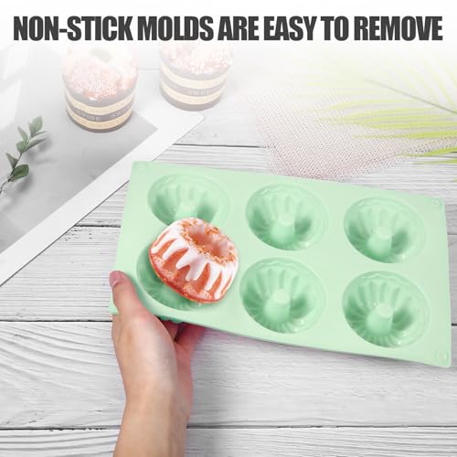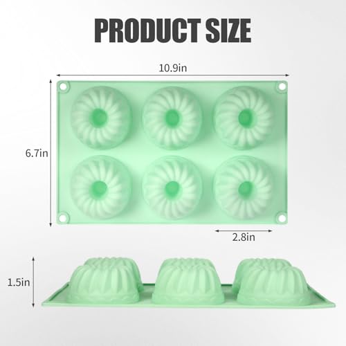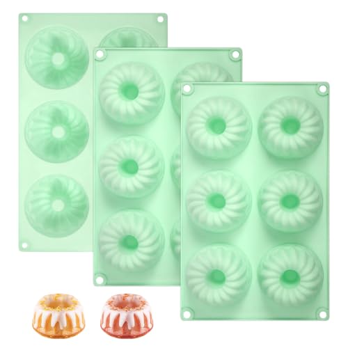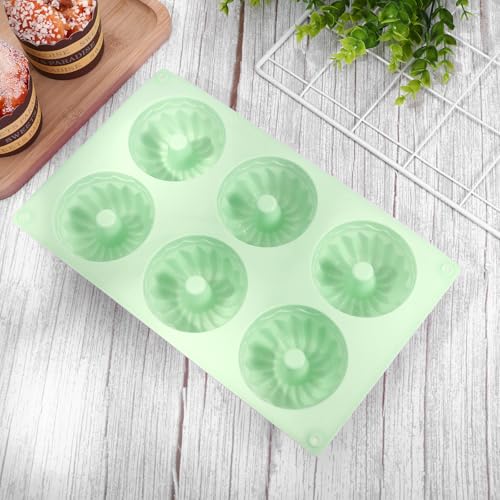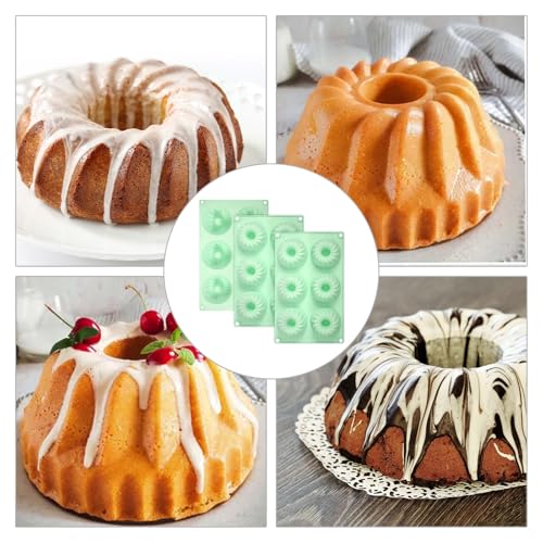 Qiuruoo - قوالب كيك صغيرة للخبز من كيورو مكونة من 3 قطع، صواني كيك صغيرة انبوبية مخددة بـ6 تجاويف، قوالب سيليكون للخبز، مثالية للبسكويت والكب كيك والجيلي والمافن والدونات (اخضر)