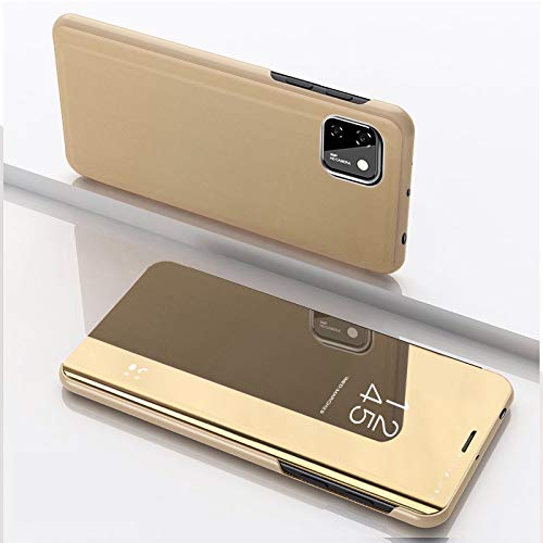 QIVSTAR - جراب حماية لسامسونج جالاكسي A03S من كيو اي في ستارز بتصميم رائع ونافذة رؤية واضحة وحامل مطلي بالكهرباء وهو مقاوم للخدش بغطاء رفيع قابل للطي لكامل هيكل الموبايل مع سطح مراة البولي يوريثان ذهبي