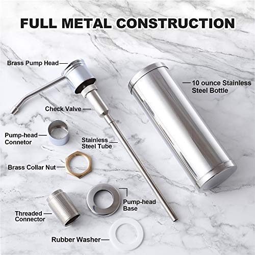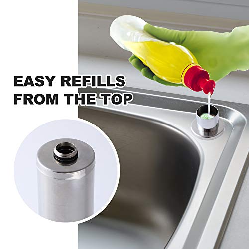 qiwip - موزع صابون يثبت على حوض المغسلة بشكل مدمج من كيويب، زجاجة من الستانلس ستيل سعة 10 اونصة قابلة لاعادة التعبئة من الاعلى براس مضخة من النحاس ملائمة لصابون تنظيف الاطباق واللوشن والمنظف للمطبخ والحمام