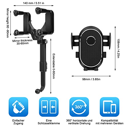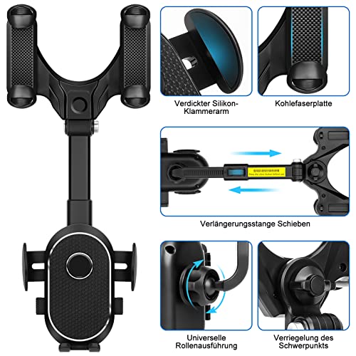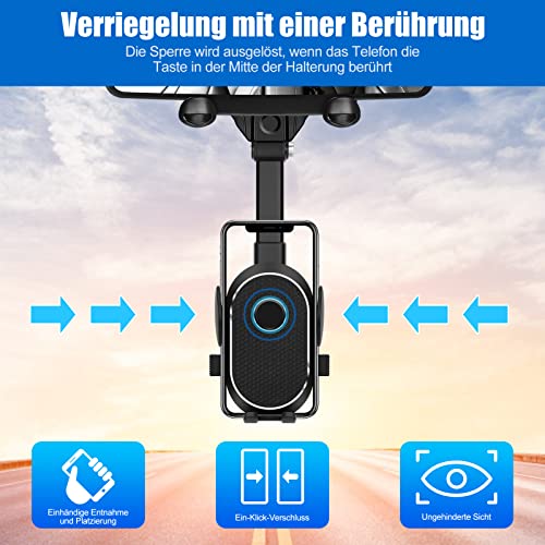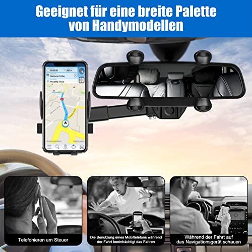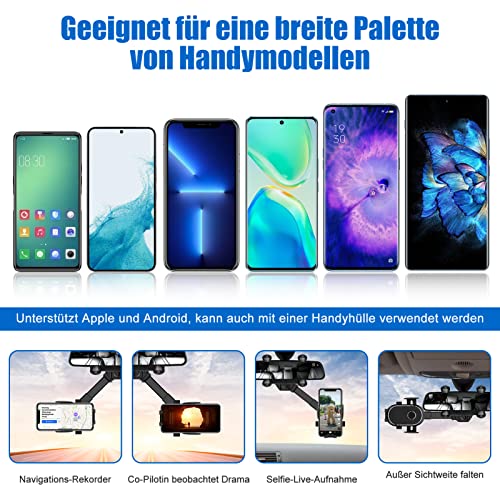QKFON - حامل موبايل لمراة الرؤية الخلفية من كيو كيه فون، حامل موبايل عالمي دوار 360 درجة وقابل للسحب، مراة رؤية خلفية للسيارة لجوالات ايفون وهواوي وشاومي وسامسونج جالكسي وغيرها