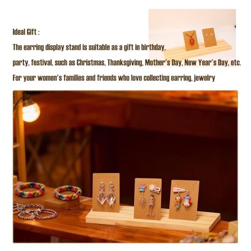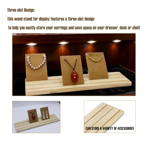 QKNUJAS - حامل عرض حلقان من الخشب من 3 فتحات لعرض المجوهرات والحلقان والخواتم، حامل بطاقات العمل، صينية تنظيم لعرض الحرف اليدوية على سطح الطاولة مقاس 30 × 7.6 × 1 سم من 1 قطعة من QKNUJAS