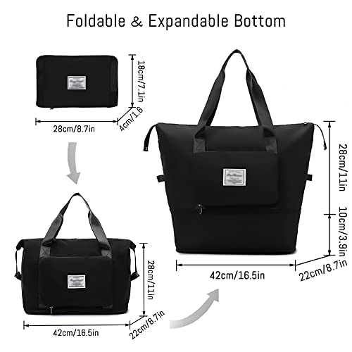 QLFJ-FurDec - شنطة كتف دفل قابلة للتوسيع بسعة L من كيلفج-فورديك رياضية للطي مقاومة للماء محمولة مناسبة للسفر لصالة الالعاب الرياضية للاستخدام الليلي للتسوق لعطلات نهاية الاسبوع وللتخييم, أسود للبالغين الجنسين