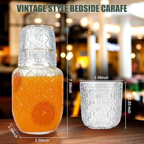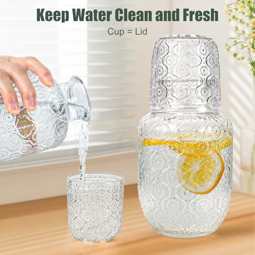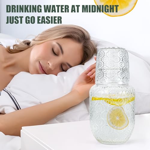 QLoztyse - طقم دورق ماء وزجاج بتصميم كلاسيكي لجانب السرير من كيولوزتايز - دورق ماء وزجاج مع كوب، دورق زجاجي سعة 414 مل وكوب 148 مل لغرفة النوم