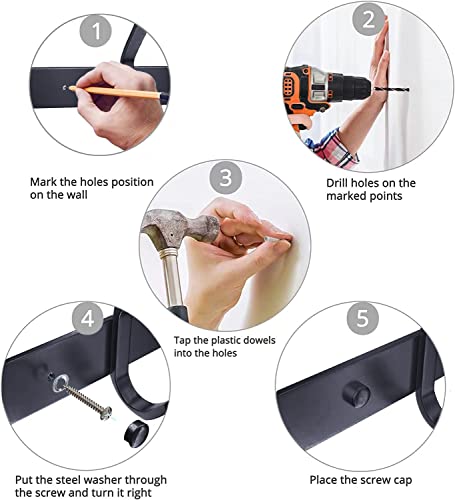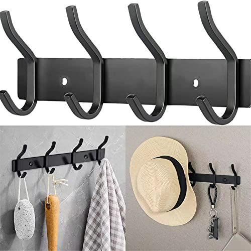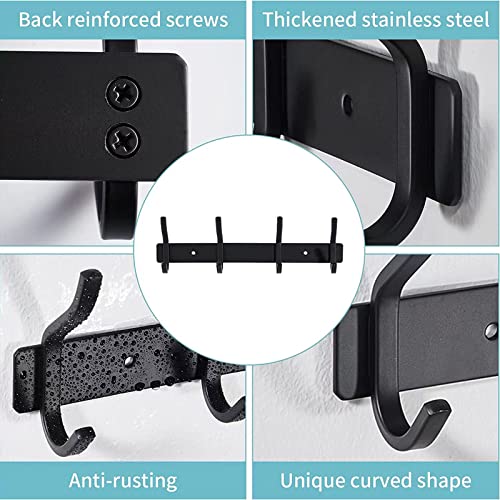 QNIIAED - خطافات باب متعددة الاغراض من الستانلس ستيل تثبت على الحائط في رف المعاطف المعدني الحديث شديد التحمل صف الخطافات شماعات منشفة ورداء الملابس والقبعات للحمام وغرف النوم كينيايد اسود 15.0 رطل 15.0