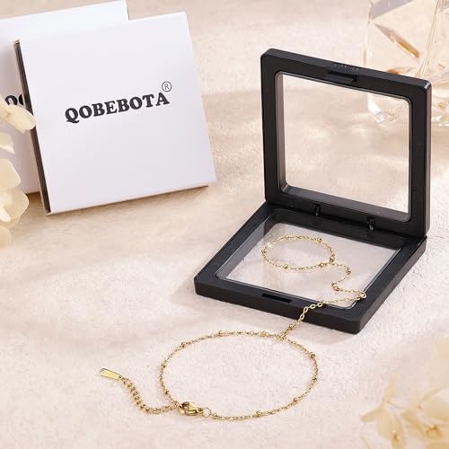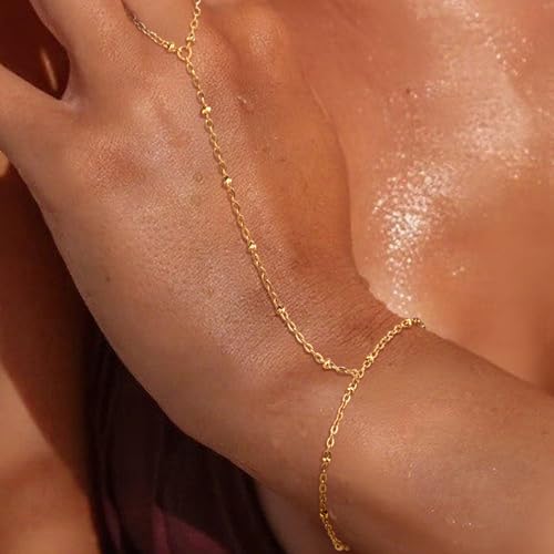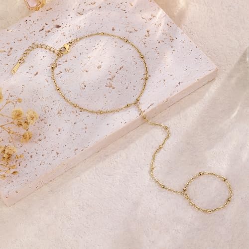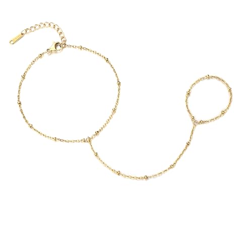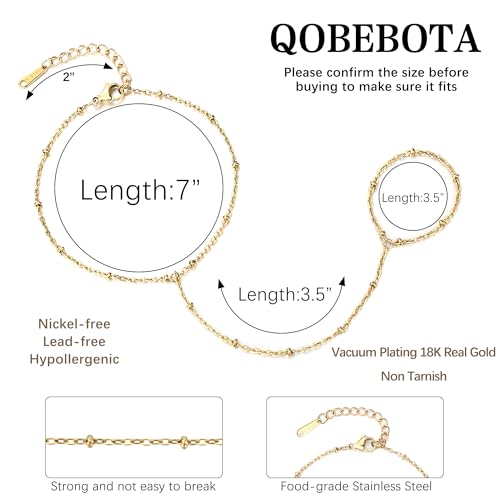 QOBEBOTA - سوار سلسلة بتصميم متصل بخاتم للإصبع من الفولاذ المقاوم للصدأ للنساء، مطلي بالذهب عيار 18 قيراط ولا يتغير لونه ومناسب للارتداء مع قطع أخرى من كيو اوبيبوتا، مجوهرات صيفية مقاومة للماء