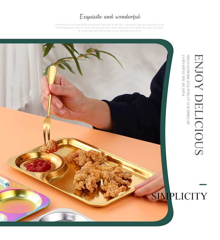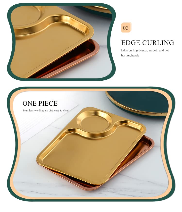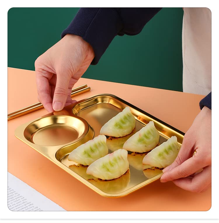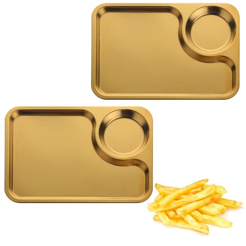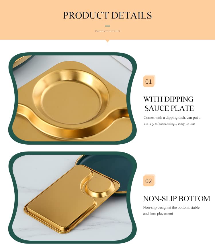 QOBIMOON - طبق دجاج مقلي من الفولاذ المقاوم للصدأ، طبق زلابية، أطباق تقديم المقبلات، أطباق سوشي، طبق نودلز، طبق هامبرغر، طبق صلصة على الطريقة الكورية لشريحة لحم الشواء، عبوة من قطعتين بلون ذهبي من كيوبيوم