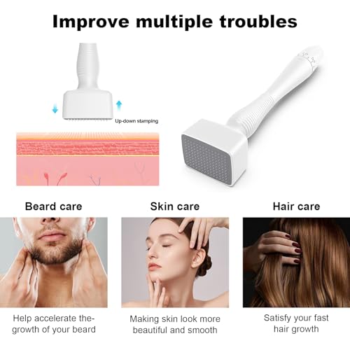 - 【تعزيز نمو الشعر】: تعمل تقنية التحفيز بالإبر الدقيقة على زيادة الدورة الدموية، وتحسين حيوية بصيلات الشعر، وتعزيز نمو شعر جديد. مع ختم الديرما هذا، ستحصل على شعر أكثر كثافة ولحية أكثر غزارة. -