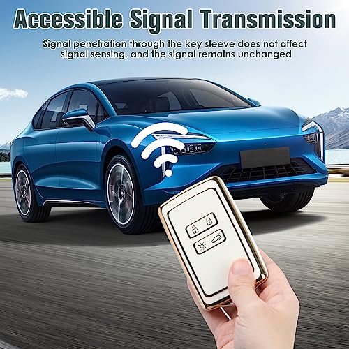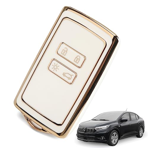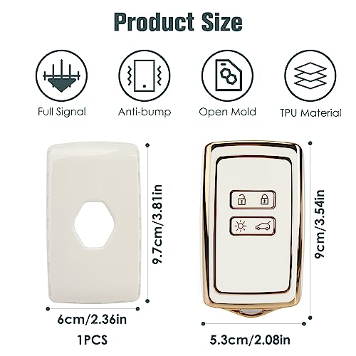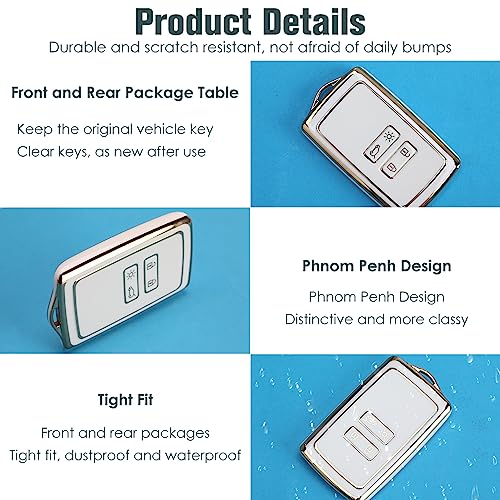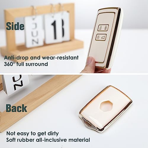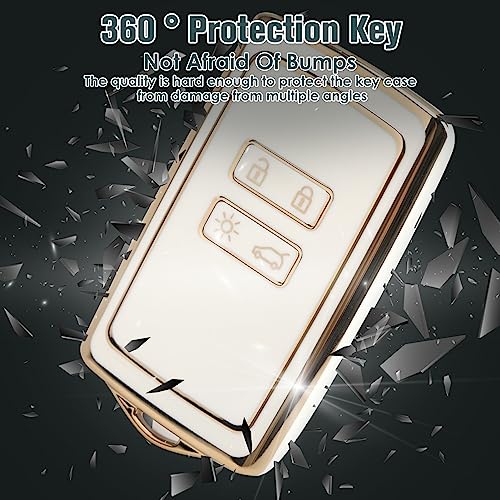 QOCO - غطاء حماية ذكي لمفتاح السيارة مصمم بعدد 4 أزرار مصنوع من البولي يوريثين المقاوم للحرارة مع سلسلة مفاتيح، بحواف باللون الذهبي (أبيض)