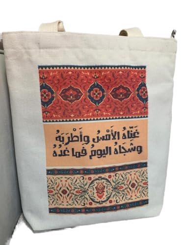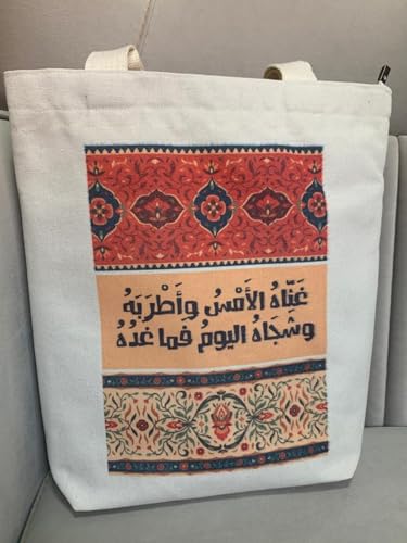 Qomash - شنطة توت قطنية مطبوعة يدويا من قماش بخط عربي من ابو القاسم الشابي، 40 × 35 سم