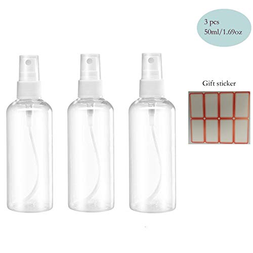 Qosea - بخاخ يو اس اس جيه، 50 مل/100 مل، مجموعة زجاجات سفر بلاستيكية صغيرة فارغة شفافة، علب قابلة لإعادة الملء مع ملصقات (3 قطع 50 مل)، للحيوانات الأليفة من كوستا