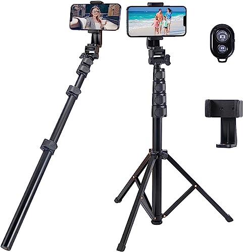 QQAPPU - حامل ثلاثي القوائم للجوال بطول 170 سم، عصا سيلفي قابلة للتمدد مع جهاز تحكم عن بعد، حامل ثلاثي القوائم محمول خفيف الوزن للسفر