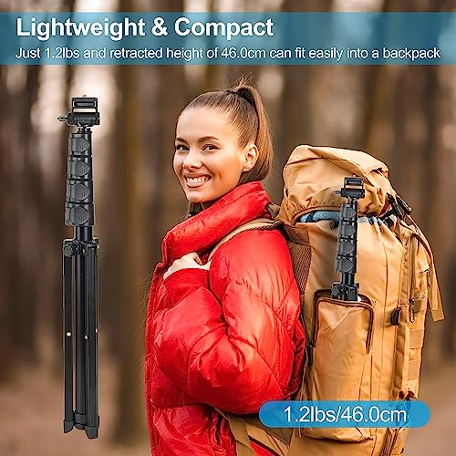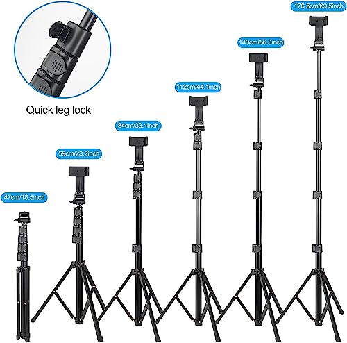 - حامل ثلاثي القوائم قابل للتمدد بطول 1.7 م】 هذا الحامل ثلاثي القوائم للهاتف أعلى من الحامل ثلاثي القوائم الآخر، قابل للتمدد من 45 سم إلى 1.7 م. مجهزة بـ 4 أقسام بقفل قلاب سريع للساق، تثبيت أكثر وأكثر ملاءمة. حامل هاتف قابل للدوران 360 درجة ورأس قابل للتعديل بزاوية 180 درجة يضمن لك التقاط زوايا فريدة