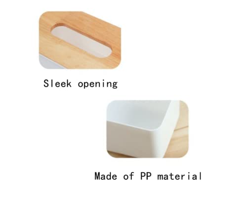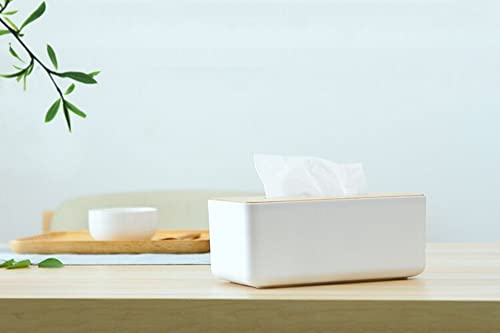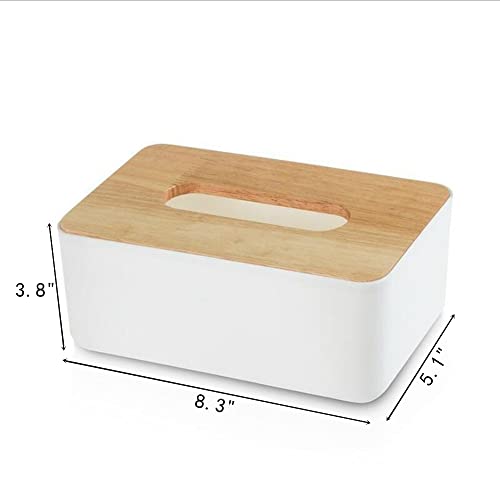 QQJ - علبة مستطيلة بغطاء خشب لمناديل الوجه الورقية للاستعمال مرة واحدة لمنضدة الحمام والطاولة وخزانة غرفة النوم والمنضدة الليلية والمكتب من كيو كيو جيه (أبيض، حجم صغير)