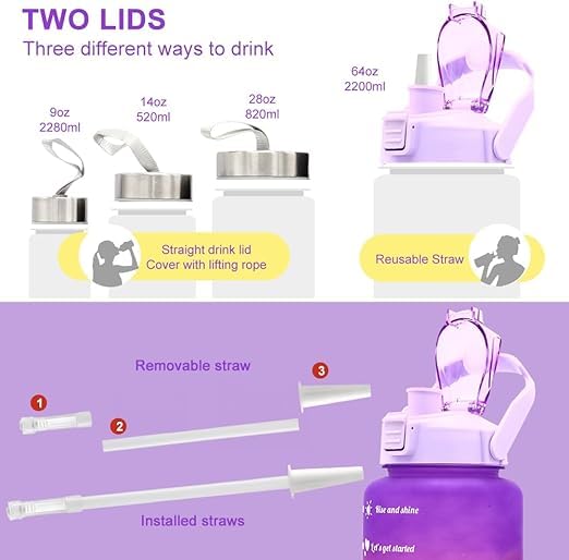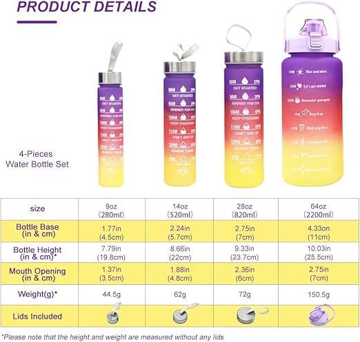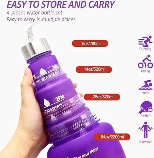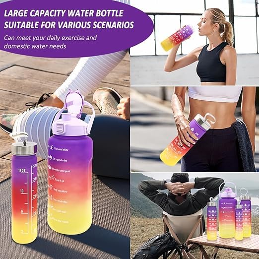 - ✅ ترطيب كامل: تحتوي هذه المجموعة على ثلاث زجاجات ذات سعة مختلفة (2000 مل 900 مل 300 مل) تلبي احتياجات الترطيب المختلفة طوال اليوم.