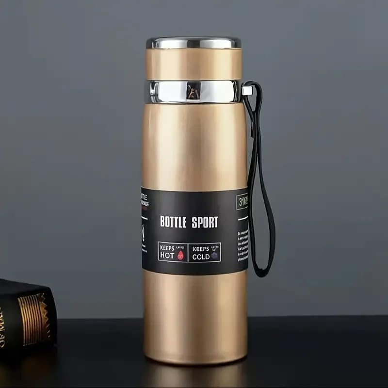 Qshop - زجاجة حرارية معزولة من كيوشوب®️ بتفريغ الهواء من الستانلس ستيل316 سعة 1000 مل، مانعة للتسرب وخالية BPA، زجاجه رياضية للقهوة والشاي، للسفر للحفاظ على المشروبات ساخنة أو باردة (Gold)
