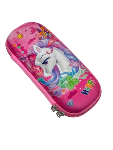 Qshop - كيو شوب® مقلمة متعددة الوظائف بتصميم كرتوني للاولاد والبنات مع جيب شبكي داخلي - منظم مثالي للوازم المدرسية (يونيكورن 3)