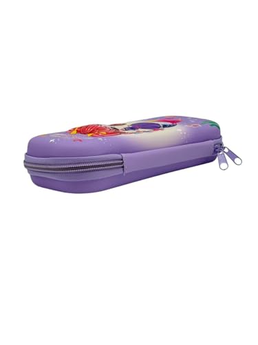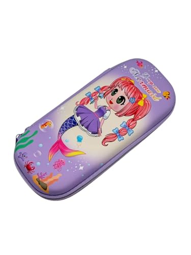 Qshop - مقلمة كرتونية من كيوشوب®️ -تصميم صلب ومتين مزين بأشكال لطيفة مزودة بجيب شبكي داخلي لتنظيم مثالي للأقلام والأدوات المدرسية. Mermaud-Purple