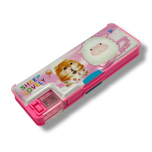 Qshop - مقلمة بمبراه للأطفال بتصاميم كرتونية جذابة من كيوشوب®️ - حقيبة أقلام مدرسية متعددة الاستخدامات مع فواصل وأماكن تخزين منظمة - مثالية للبنات والأولاد في المدرسة والرحلات (Pink-Sheep)