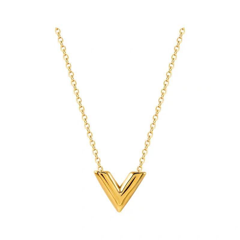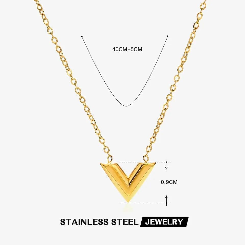 Qshop - اكتشف سحر مجوهرات الستانلس ستيل مع سلسلة على شكل حرف V من مطلي بالذهب عيار 18 قيراط بتصميم مخصص للنساء والفتيات كيوشوب®️ لمعان يدوم و جاذبية لا تضاهى