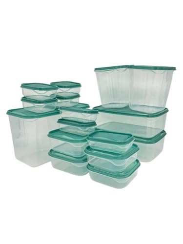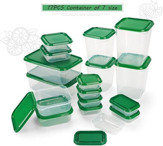 Qshop - مجموعة علب تخزين الطعام من كيوشوب®️ رئيسية في المطبخ حاويات بلاستيكية مربعة بغطاء محكم الغلق لتخزين وإعداد الوجبات قابلة لاعادة الاستخدام علبة 17 قطعة Dark green