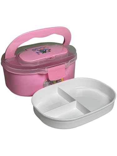 Qshop - لانش بوكس من كيوشوب®️ بـ3 تقسيمات واسعة – بوكس مثالي للمدرسة أو النادي أو أي نشاط، يحافظ على تنظيم وجبات طفلك بمساحة كبيرة أسفل الأقسام (Light Pink)