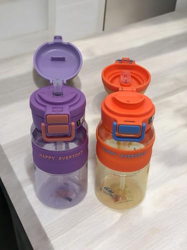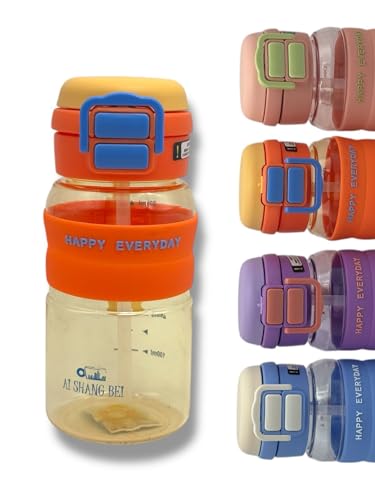Qshop - زجاجة ماء متعددة الاستخدام سهلة الحمل بيد واحدة من كيوشوب®️(630مل)غطاء مزدوج يحتوي على فتحتين للشرب الأولى مزودة بماصة والثانية للشرب المباشر مثالية للاستخدام اليومي (Orange)