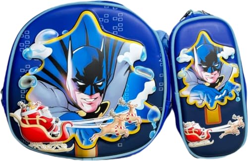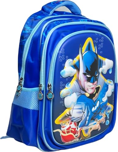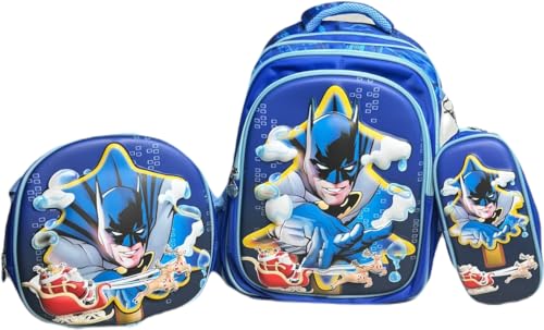 Qshop - مجموعة شنطة ظهر مدرسية 3 قطع بريميوم مقاس 16 بوصة طقم ظهر+ لانش باج + مقلمة للمدرسة والسفر والأنشطة الخارجية Blue-Batman بوليستر أزرق