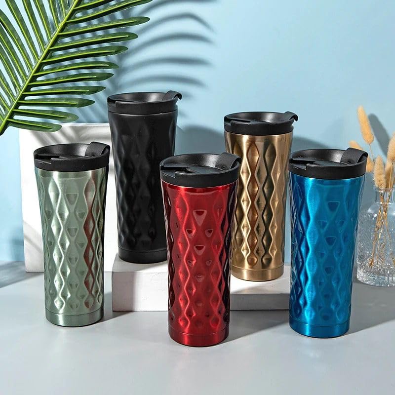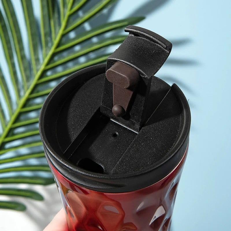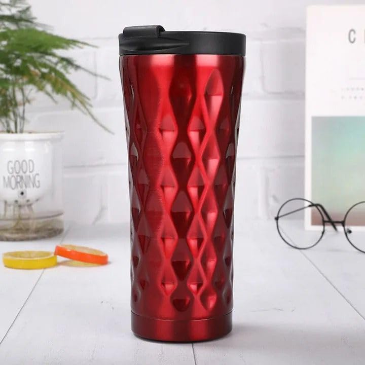 Qshop - مج حراري فاخر من الستانلس ستيل كيوشوب®️، 500 مل، اغلاق مانع للتسرب، ساخن وبارد، خال BPA، كوب قهوة بتصميم ماسي لامع (Red)