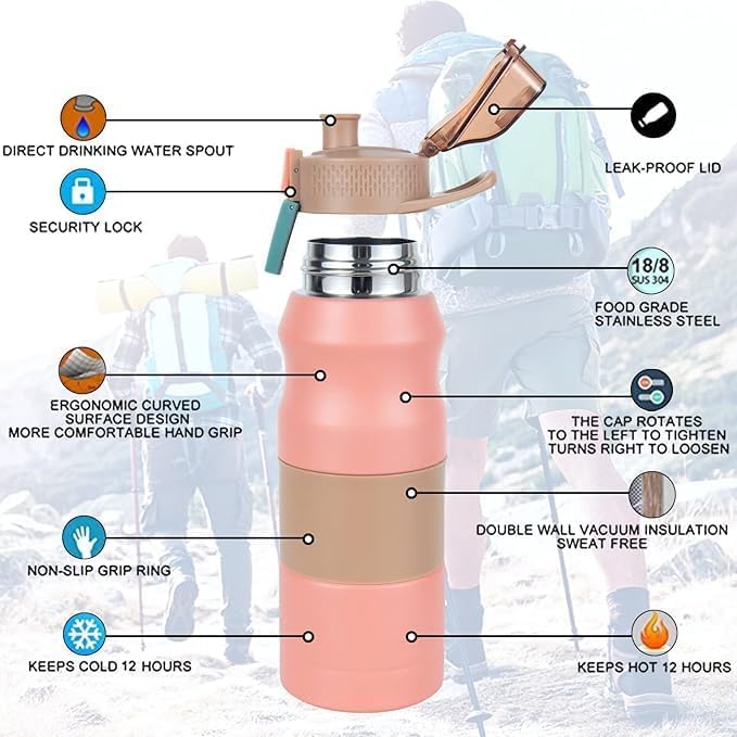 - ✅عزل مزدوج من الستانلس ستيل: استمتع بالمشروبات في درجة الحرارة المفضلة لديك مع الزجاجة المعزولة ذات الهيكل المزدوج. سواء كانت قهوة ساخنة أو ماء بارد، فإن هذا الثيرموس يحافظ على مشروبك بالطريقة التي تريدها.