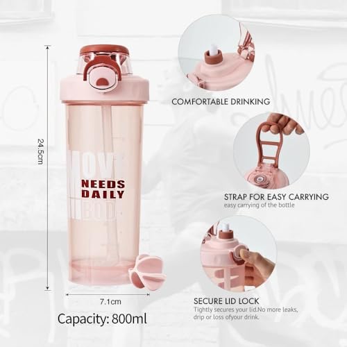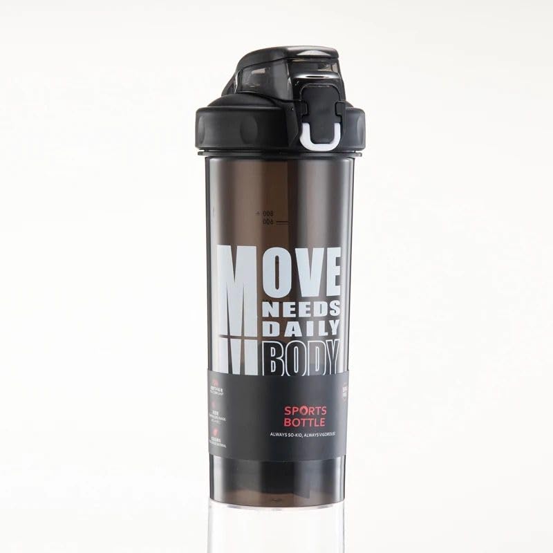 Qshop - بروتين شيكر بوتل زجاجة مياه رياضية مانعة للتسرب مع شفاطة من كيوشوب®️ شرب محمولة عصرية ومتينة للجيم واللياقة البدنية800m خالية مادة بيسفينول A Black