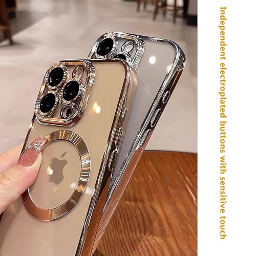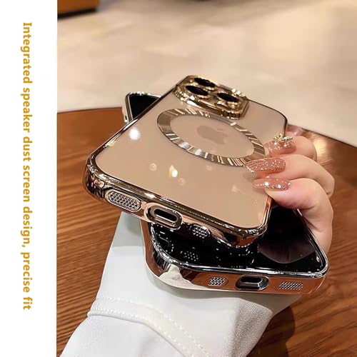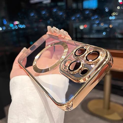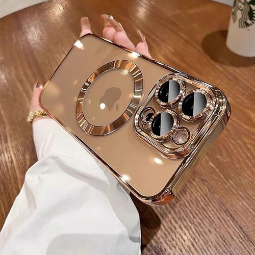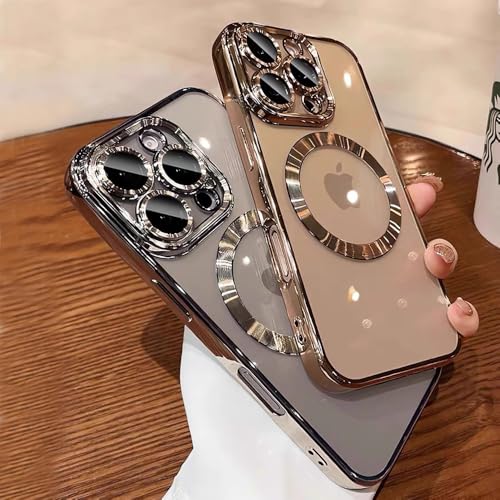QSIETSPY - جراب موبايل مغناطيسي مطلي مقاوم للاصفرار بتصميم مطلي وناعم لموبايل آيفون 16 برو ماكس 6.9 بوصة متوافق مع ماج سيف مع واقي عدسة كاميرا كامل من QSIETSPY، تيتانيوم (ديزرت تيتانيوم)