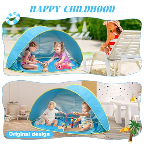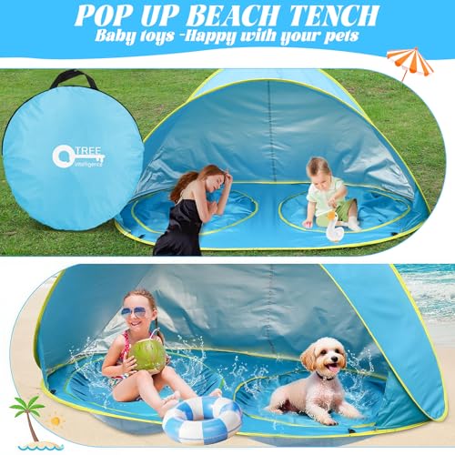 QTREE intelligence - خيمة شاطئ للأطفال من كيو تري انتيليجنس بـ 2 حمام سباحة وقابلة للفتح التلقائي، خيمة محمولة بعامل حماية من الأشعة فوق البنفسجية 50+ وشنطة حمل للسفر والشاطئ والتخييم والاستخدام الداخلي