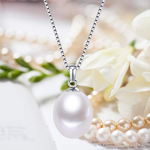 QTRESOR - هدايا عيد الميلاد QTRESOR للنساء من الفضة الاسترلينية قلادة من اللؤلؤ الطبيعي المستزرع