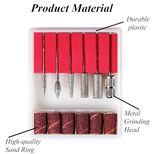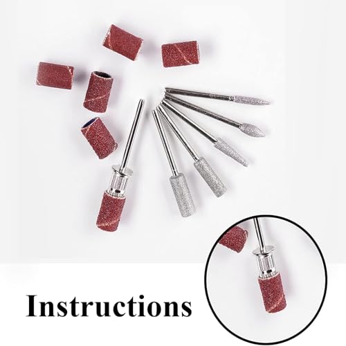 - ملحقات طقم مبارد الأظافر - تحتوي العبوة على طقم من مجموعة رؤوس مبارد الأظافر، متضمنة في 6 أنماط مختلفة من رؤوس شحذ وستة حلقات صنفرة. المواصفات مناسبة لمعظم صاروخ تلميع الأظافر في السوق، مع صندوق تخزين، أسهل في التخزين