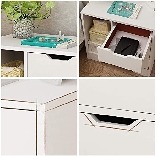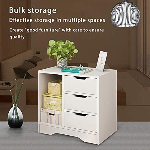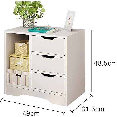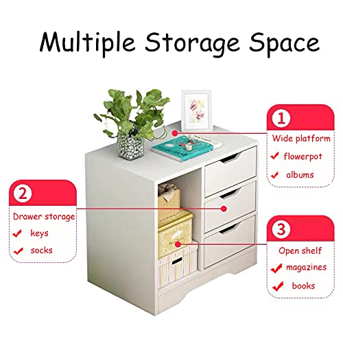 NC - رف طاولة بجانب السرير من كوالايف قهوة جانبية خزانة تخزين مفتوح مع ثلاثة ادراج ورف زاوية خشبية بسيطة وعصرية لغرفة النوم أبيض