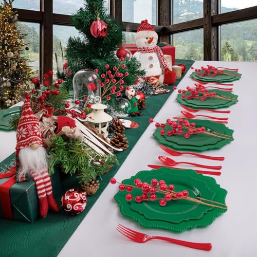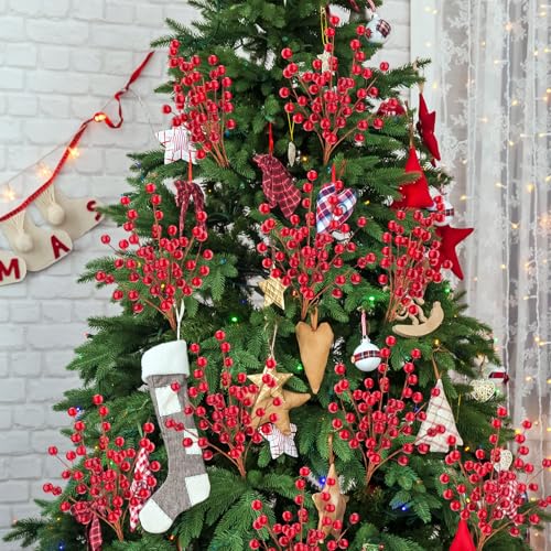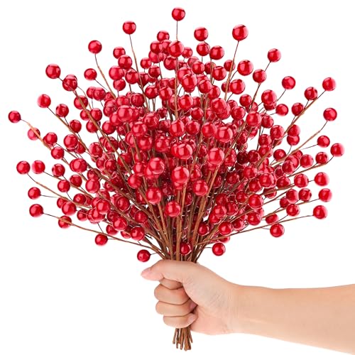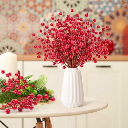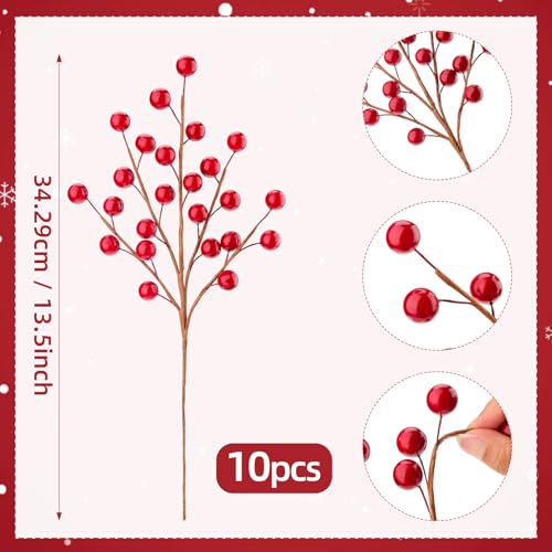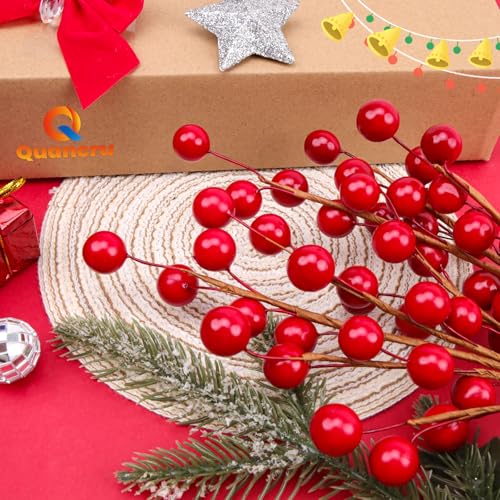 Quancru - 10 قطع من سيقان التوت الاحمر الاصطناعية من كوانكرو، 13.5 انش، فروع التوت الهولي للكريسماس للمنزل والعطلات وحفلات الزفاف والعام الجديد، اكليل زهور للحرف اليدوية والمزهريات