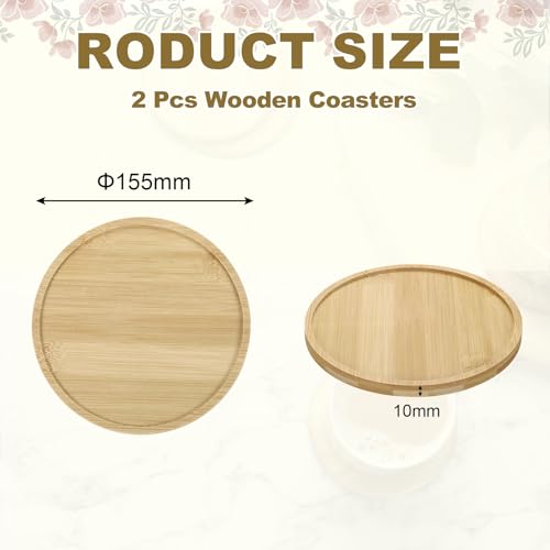 - محتويات العبوة: سوف تحصل على قطعتين من قواعد الأكواب الخشبية المستديرة، الطول: 155 ملم، العرض: 155 ملم، الارتفاع: 10 ملم.