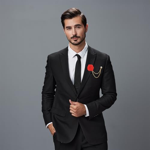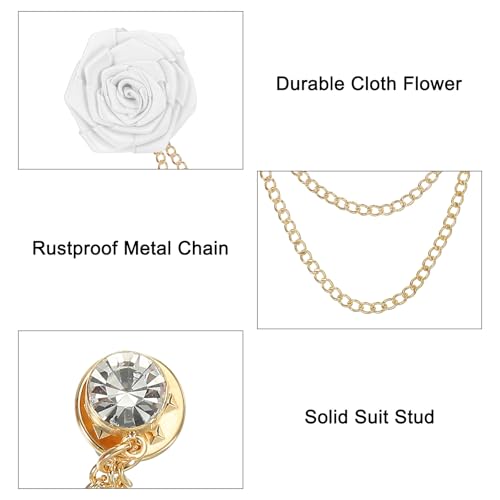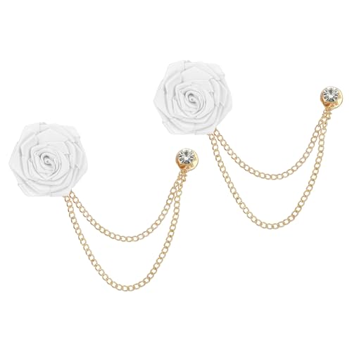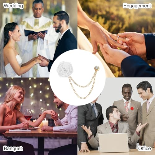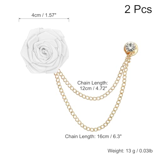 QUARKZMAN - بروش زفاف على شكل وردة من كواركزمان، مقاس 4 سم، مصنوع من خليط معدني مزين بقماش مع سلسلة بشراشيب، مناسب للرجال في حفلات الزفاف، قطعتان، أبيض