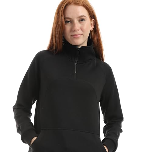 Coctail - سويت شيرت بلوفر بسوستة ربع ورقبة عالية وأكمام طويلة وجيب كانجارو 8761