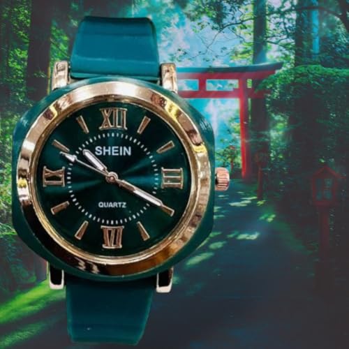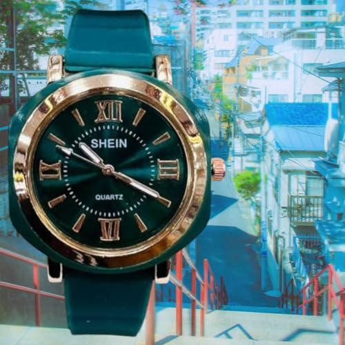 Generic - ساعة كوارتز، مينا أسود، إطار ذهبي، حزام سيليكون أزرق