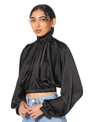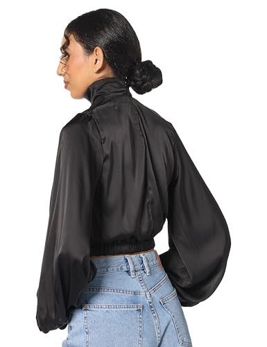 Quattro - Quattro Black Long Sleeve Neck Blouse