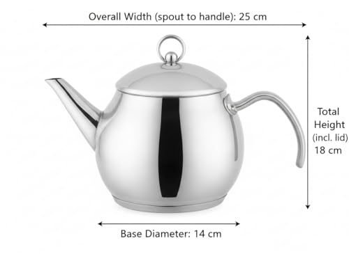 QUEEN. - إبريق شاي تركي كبير 72797031 من الفولاذ المقاوم للصدأ، بتصميم أنيق مزين بوردة لتخمير الشاي بلون فضي من كوين